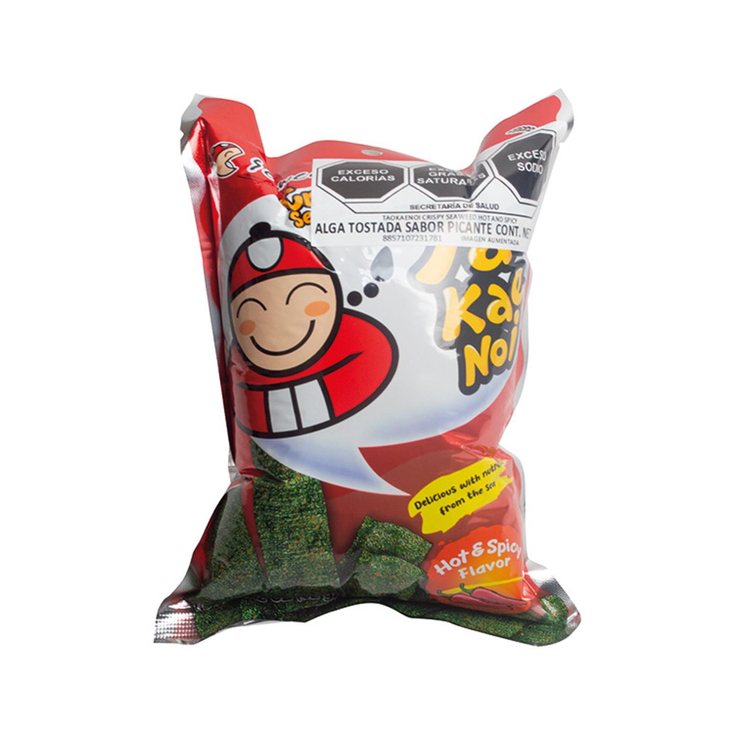Acerca del producto: Taokaenoi Crispy Seaweed Hot and Spicy es una deliciosa y crujiente merienda de alga nori, combinada con un toque picante que estimula el paladar. Esta botana es perfecta para disfrutar como snack en cualquier momento del día, brindando una experiencia única y saludable.