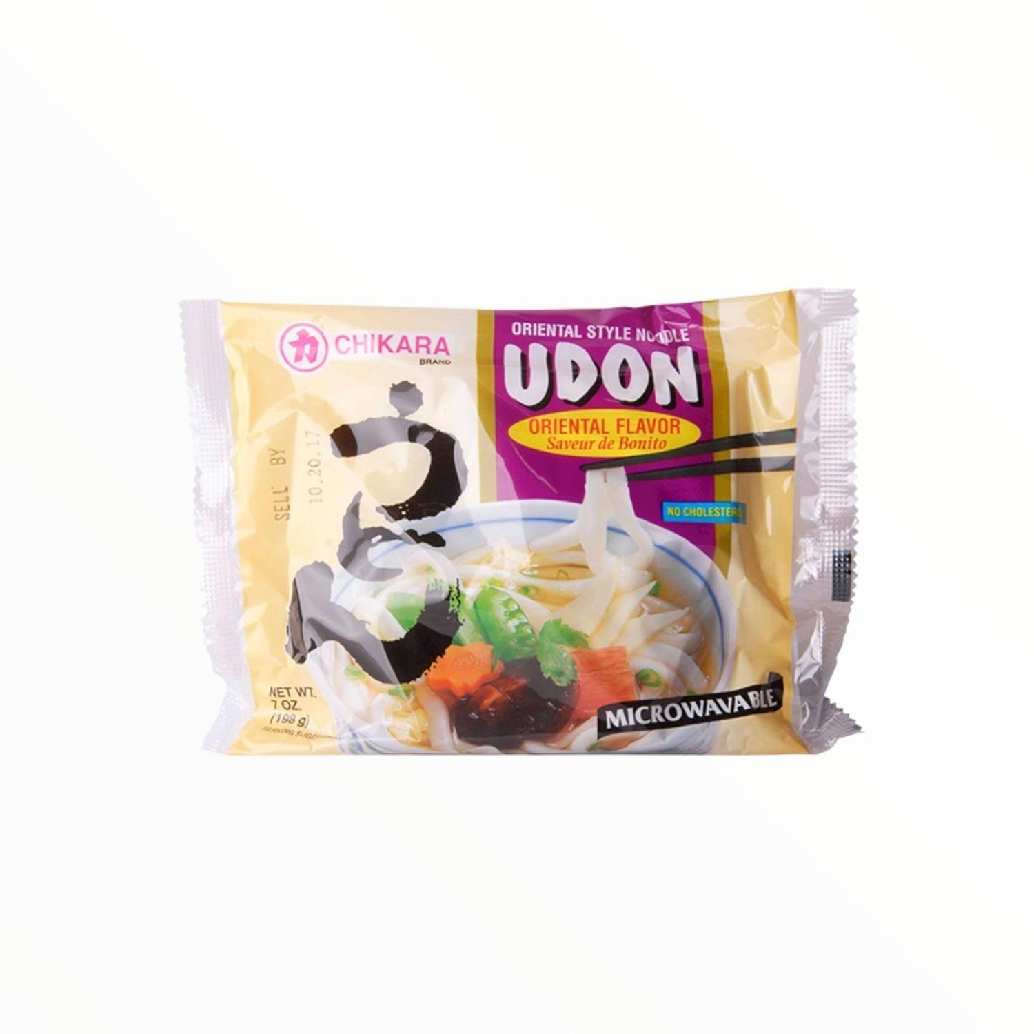 El sabor a oriental Udon para microondas de CHIKARA es un tipo de fideo de harina de trigo, típico de la cocina japonesa,