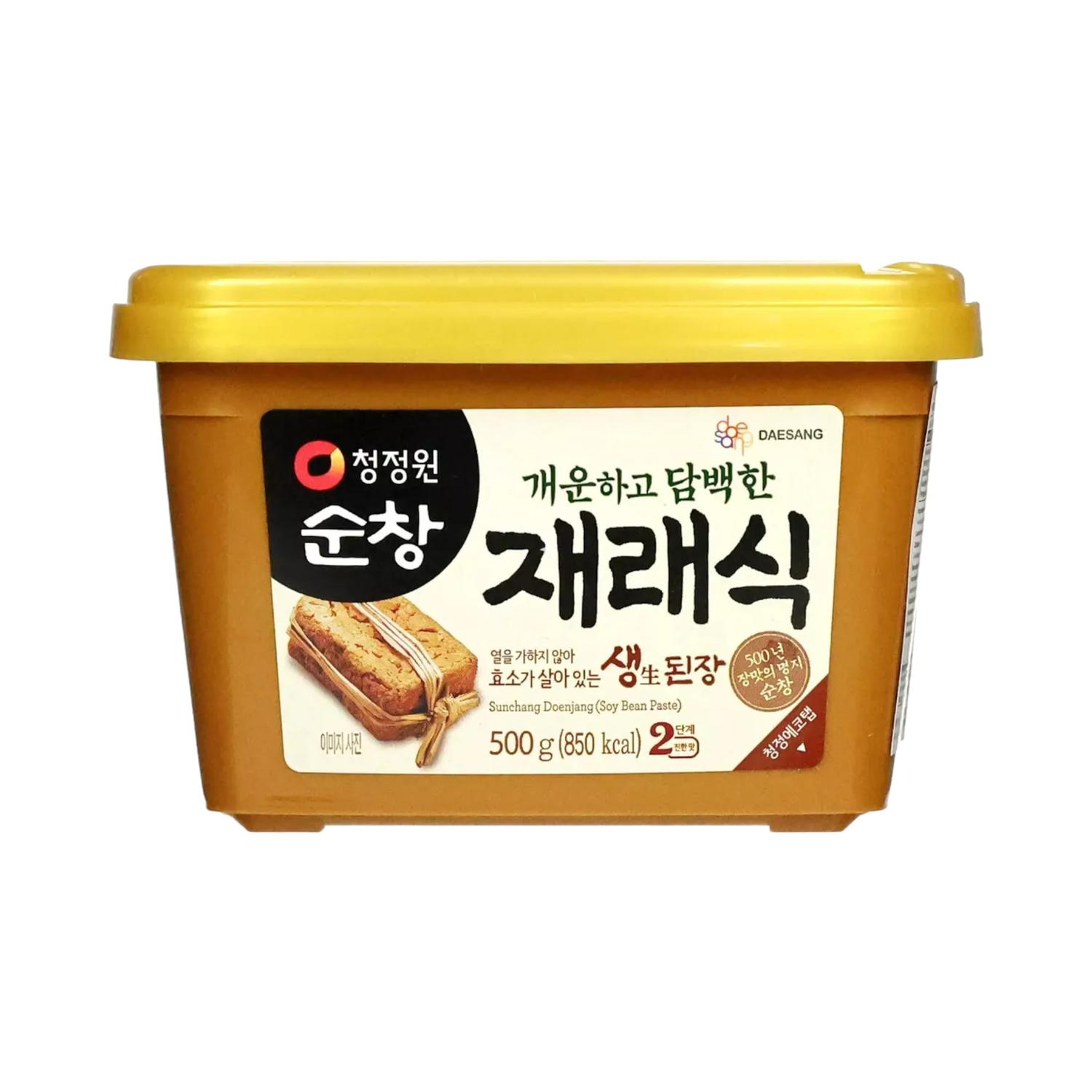Acerca del producto: Pasta de soya fermentada, utilizada en la cocina coreana. Sabor: Salado y umami, con un profundo sabor a fermentación. Usos o maridajes del producto: Ideal para sopas y salsas coreanas, como el doenjang jjigae. País de Origen: Corea del Sur. Ingredientes principales: Soya, sal, agua. Dimensión del producto: 500 g. Alergenos: Sí. Vegano: Sí.