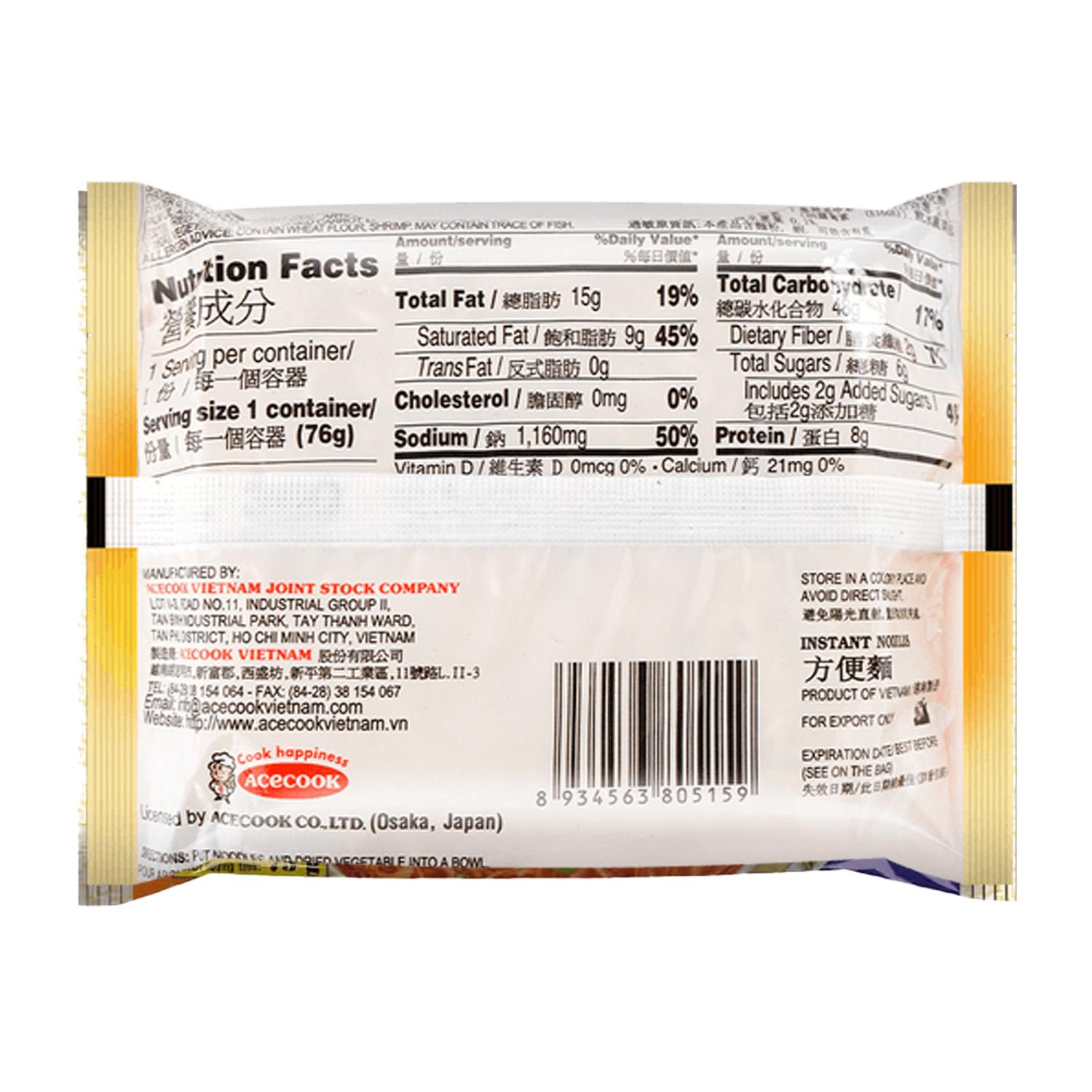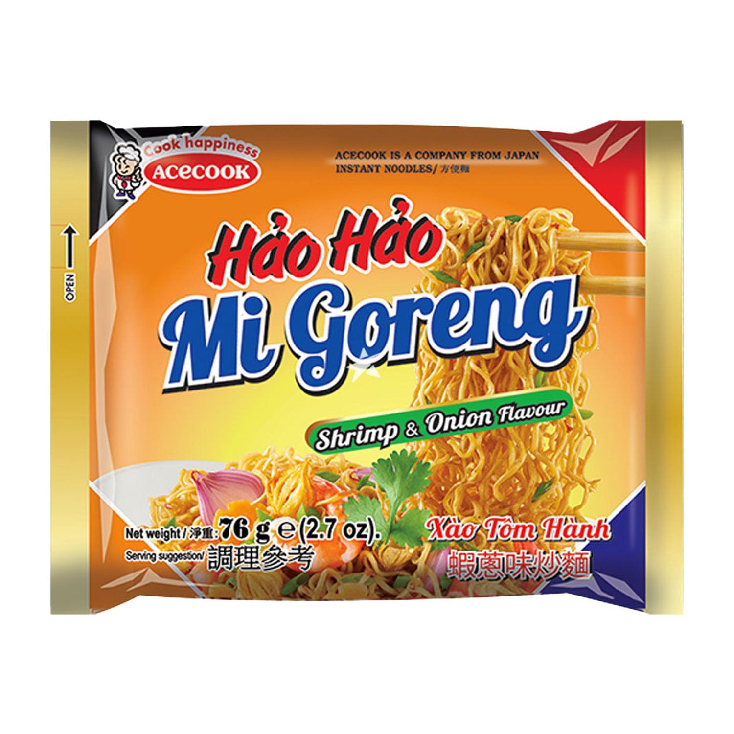 Acerca del producto: Acecook Hao Hao Mi Goreng Camarón & Cebolla 76g es una deliciosa sopa instantánea que ofrece la clásica receta de fideos fritos al estilo indonesio, pero con un toque de camarón y cebolla. Su salsa dulce y salada acompaña perfectamente los fideos para una experiencia sabrosa y rápida.