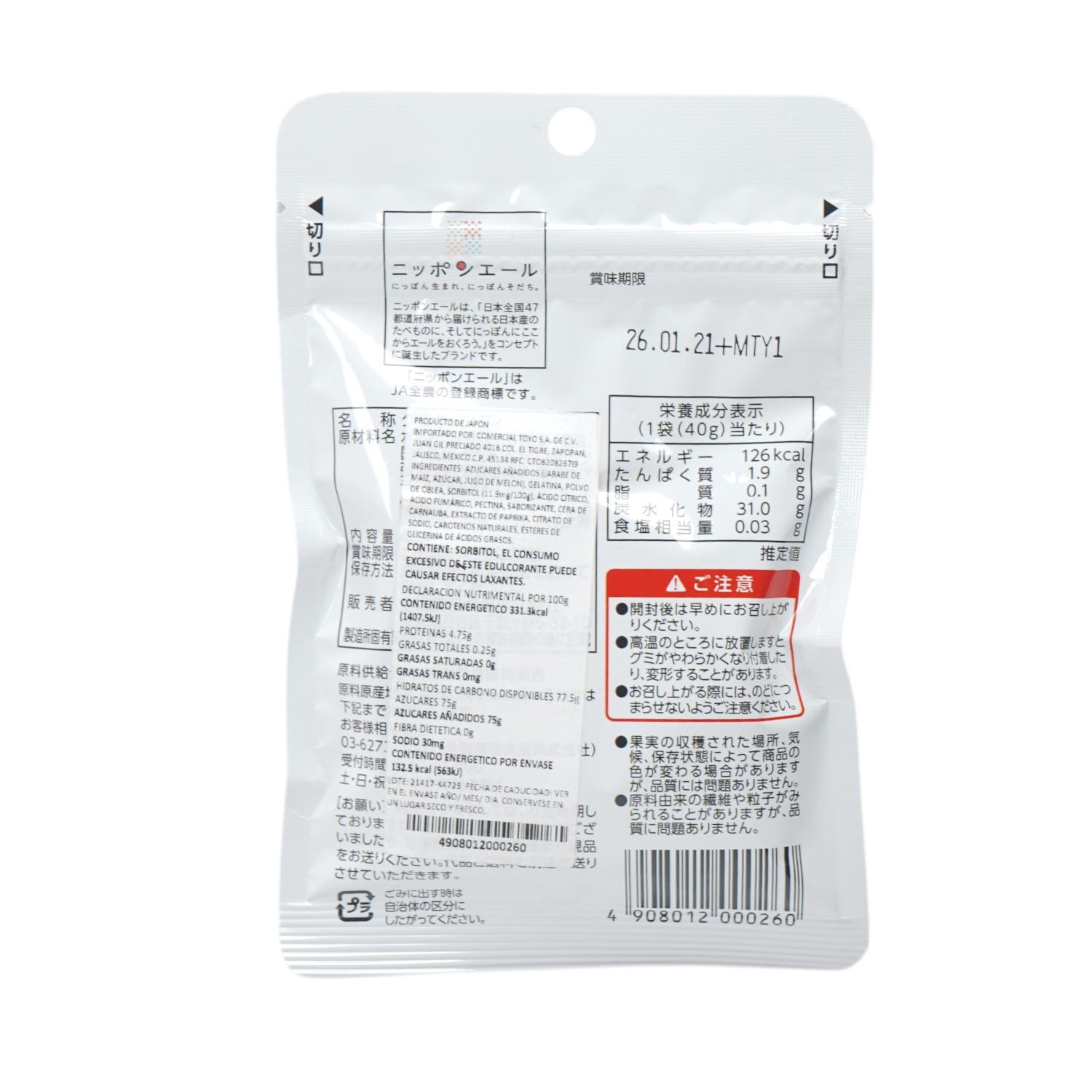 Acerca del producto: Gomitas suaves con sabor auténtico a melón japonés, muy populares como dulce frutal.