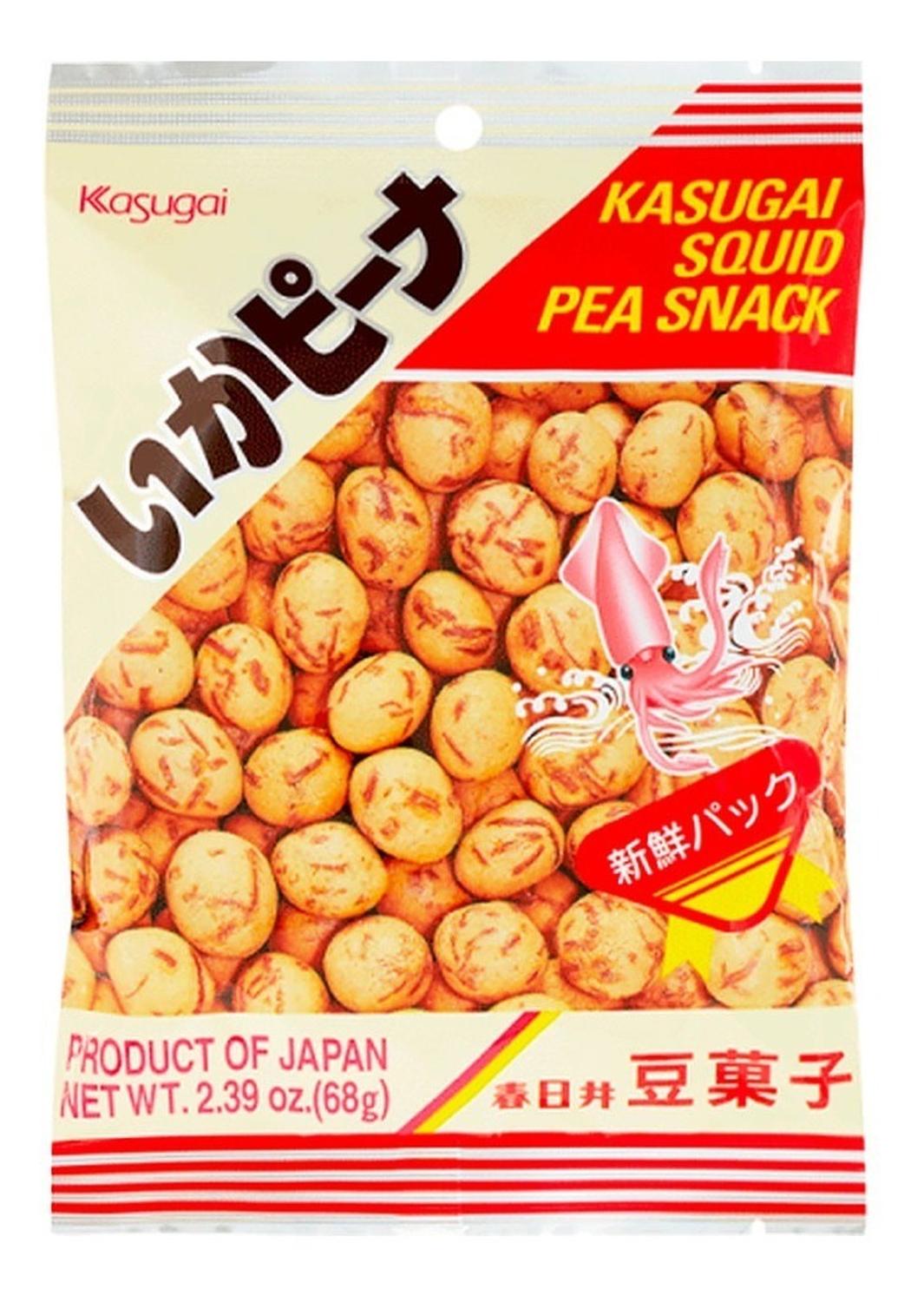 botana de frijol ligeramente con sabor a calamar con una deliciosa textura de masa crujiente.