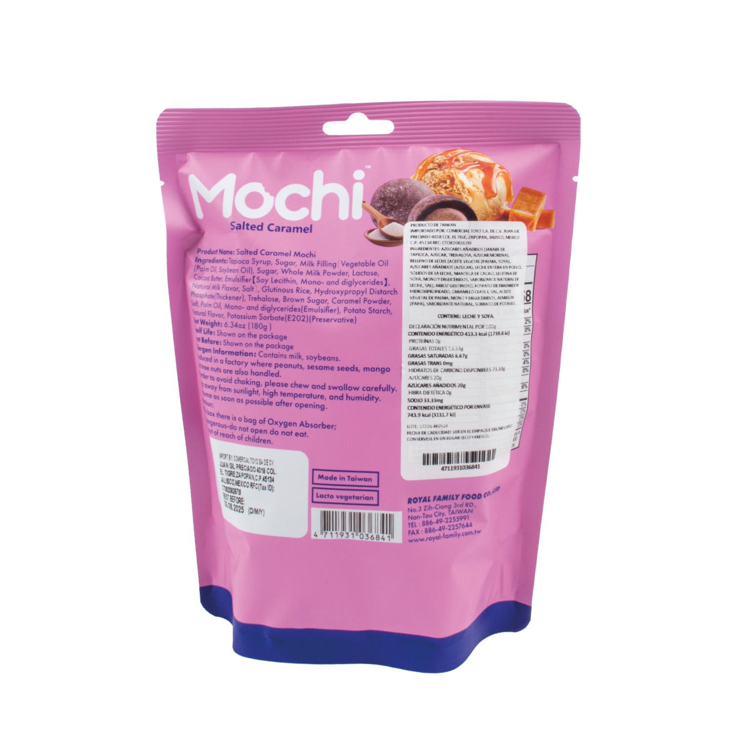 Acerca del producto: Mochi Royal de caramelo es una deliciosa combinación de textura suave y el dulce sabor del caramelo. Esta variedad de mochi es ideal para quienes disfrutan de lo dulce y exótico en un solo bocado.
