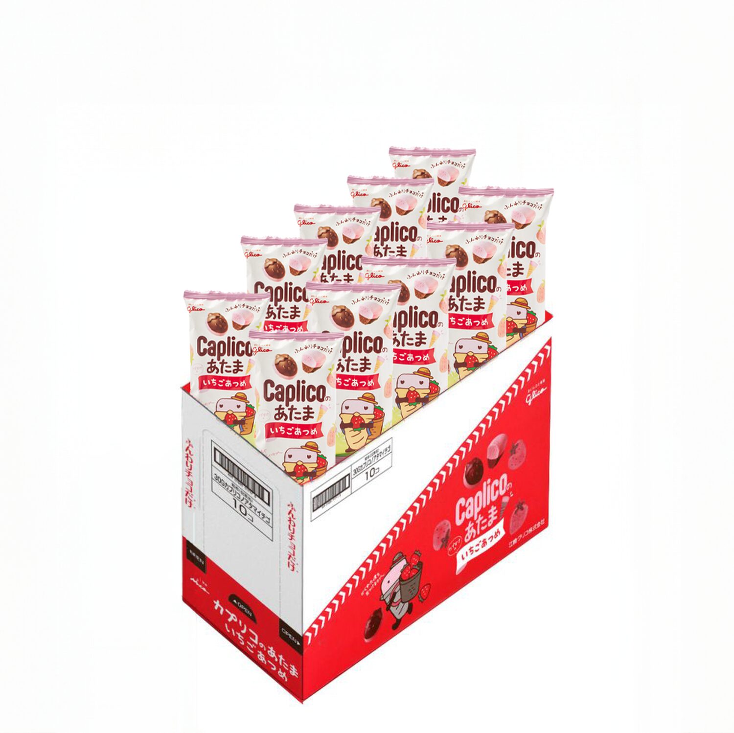 Acerca del producto: Delicioso chocolate japonés Caplico de Glico con un sabor a fresa, presentado en un formato ligero y crujiente.