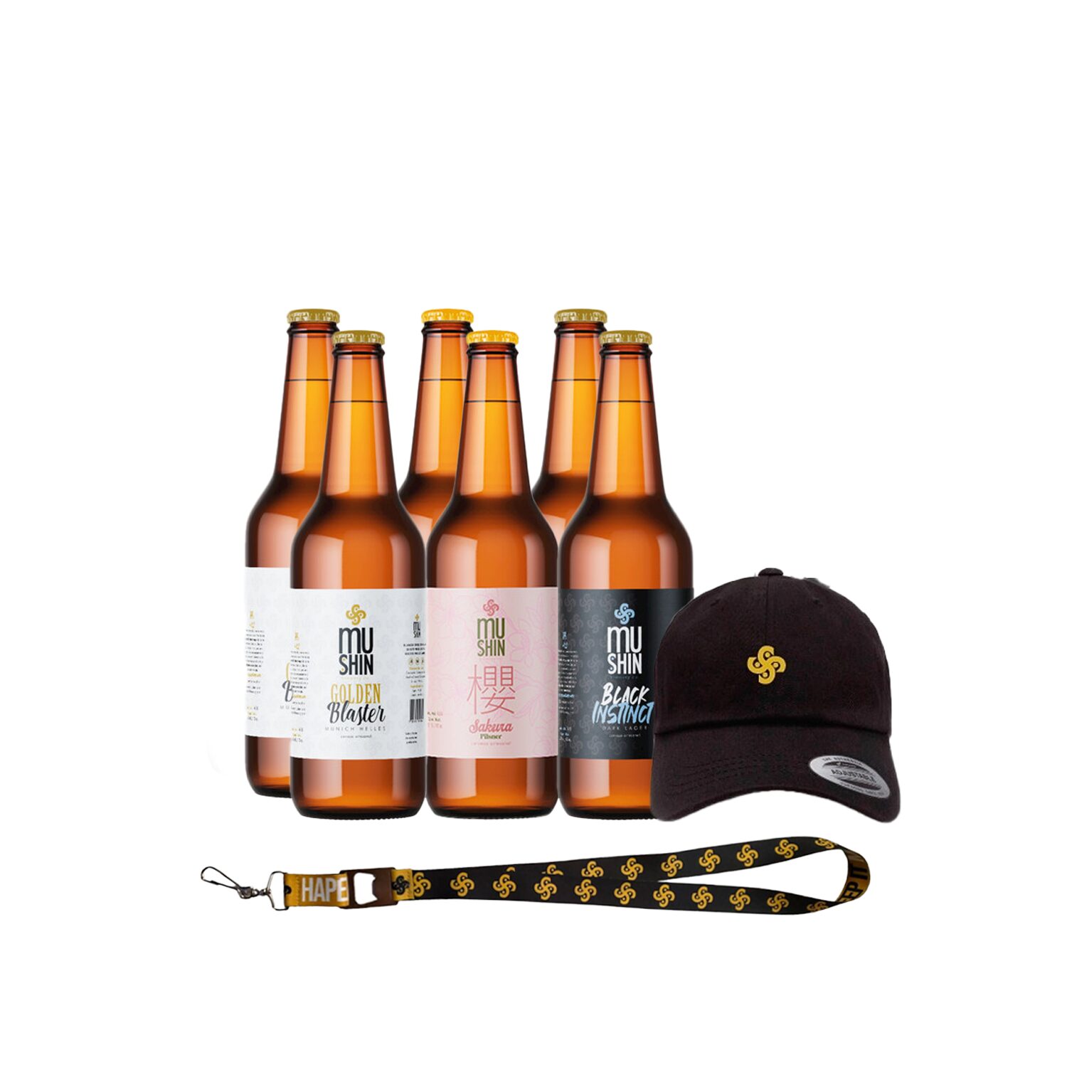 Paquete de Cerveza Artesanal Mushin, 6 piezas Llévate una gorra y un llavero con destapador. *Valido hasta agotar existencias.
