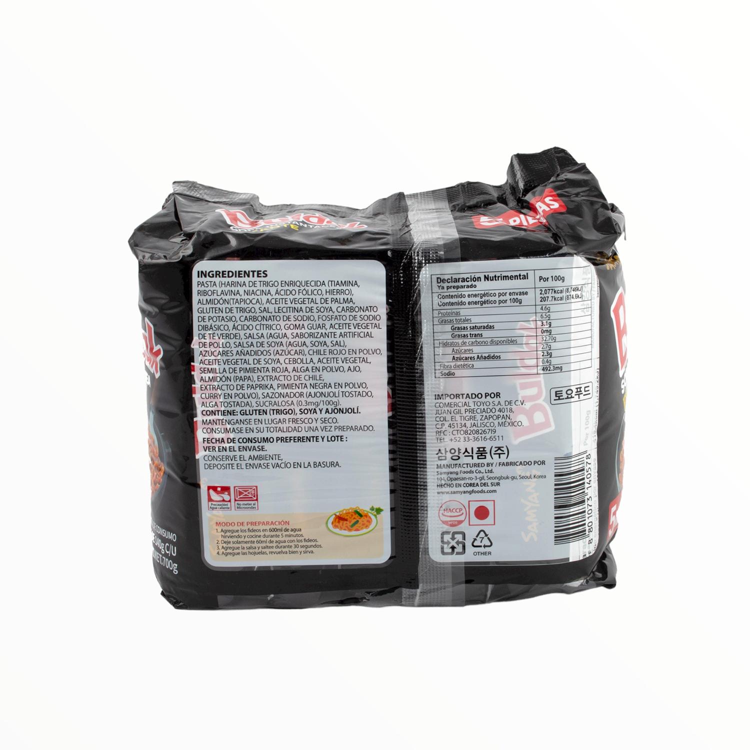 Paquete con 5 ramen instantáneos sabor hot chicken cheese