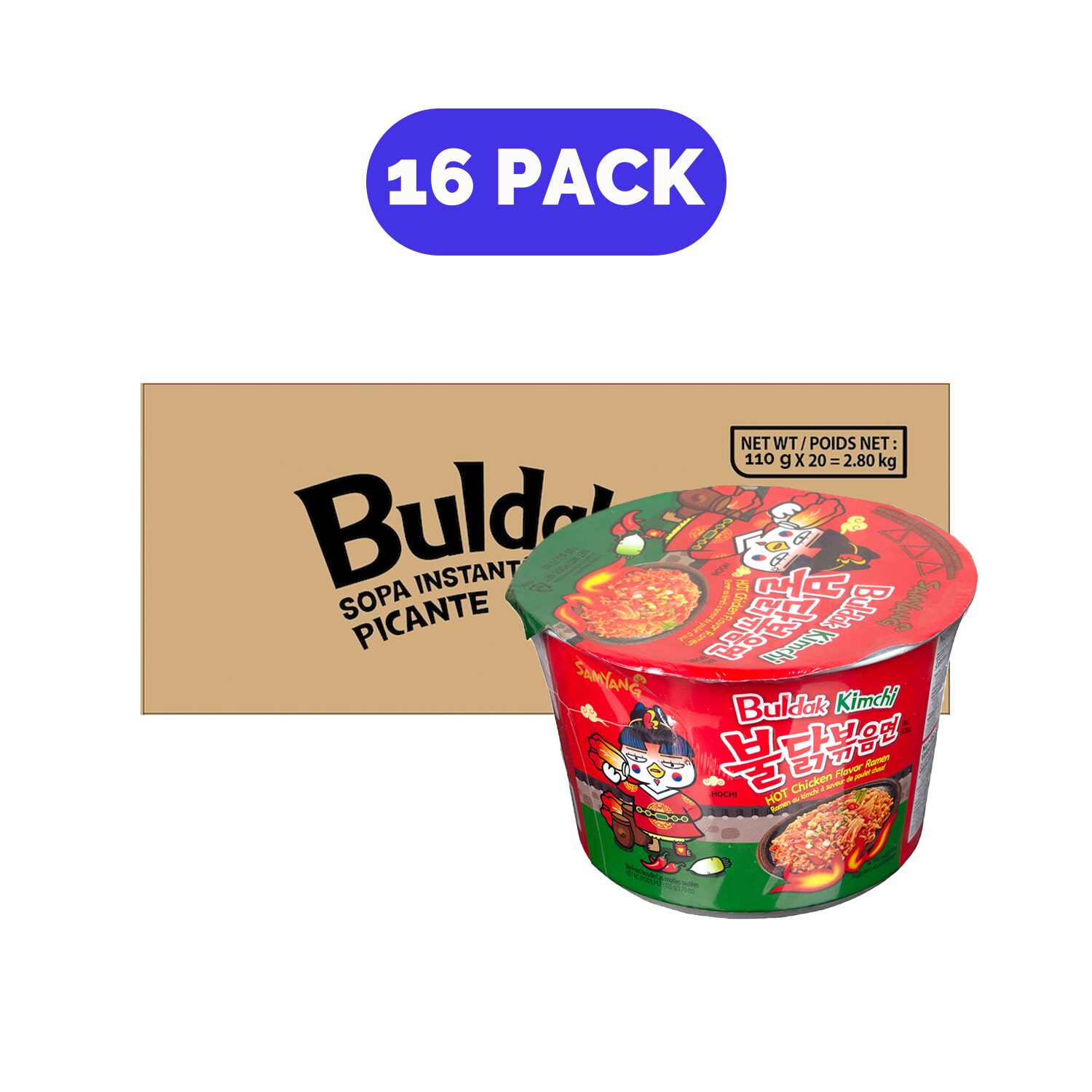 Paquete Samyang Hot Chicken Big Bowl Kimchi 105 G 16 Pzas