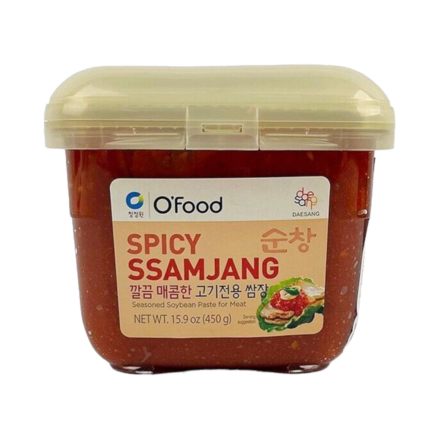 Acerca del producto: Pasta picante coreana ideal para envolver carnes. Sabor: Picante y umami, con un toque salado. Usos o maridajes del producto: Ideal para envolver carnes a la parrilla, como el bulgogi. País de Origen: Corea del Sur. Ingredientes principales: Soya, chile, ajo, sésamo. Dimensión del producto: 450 g. Alergenos: Sí. Vegano: No.