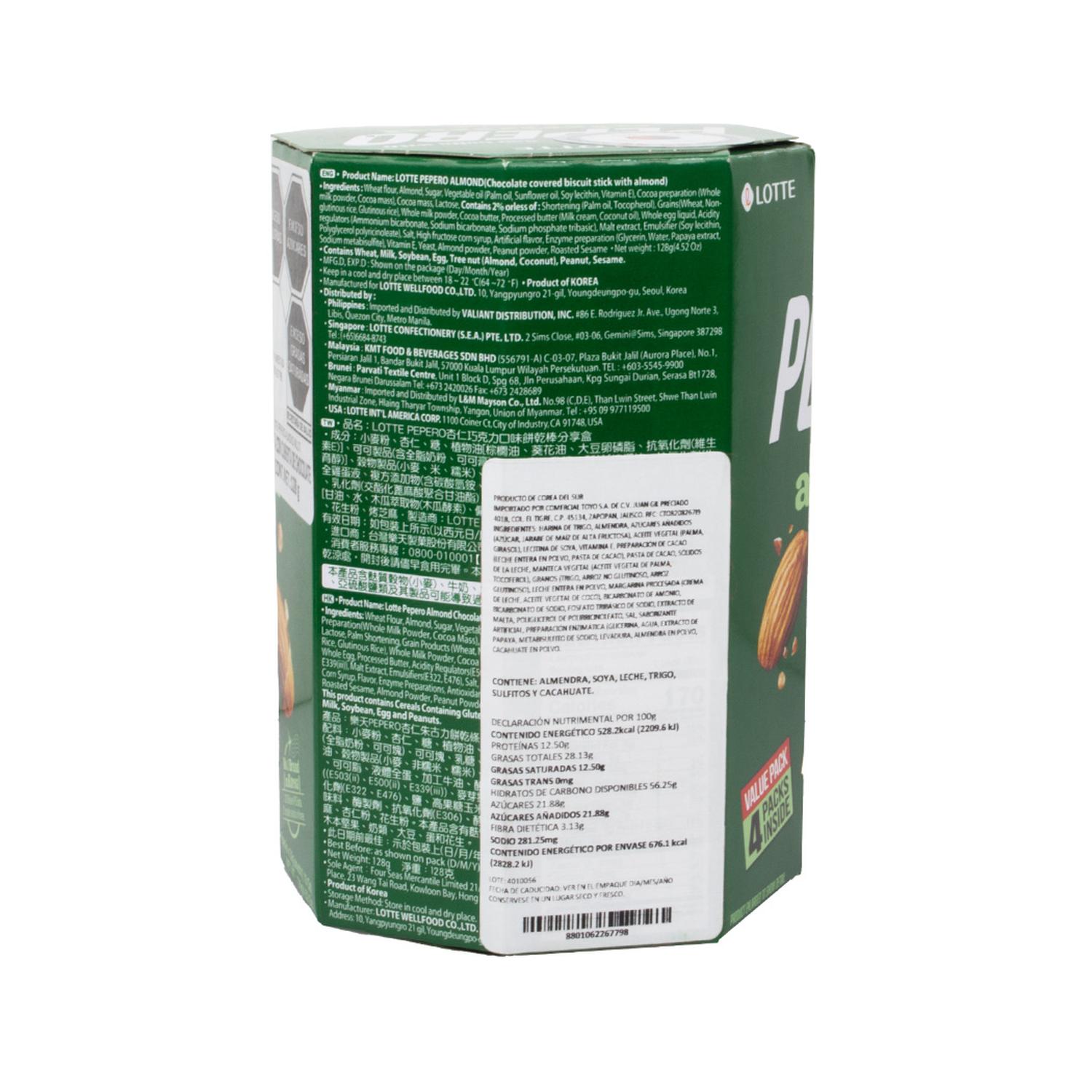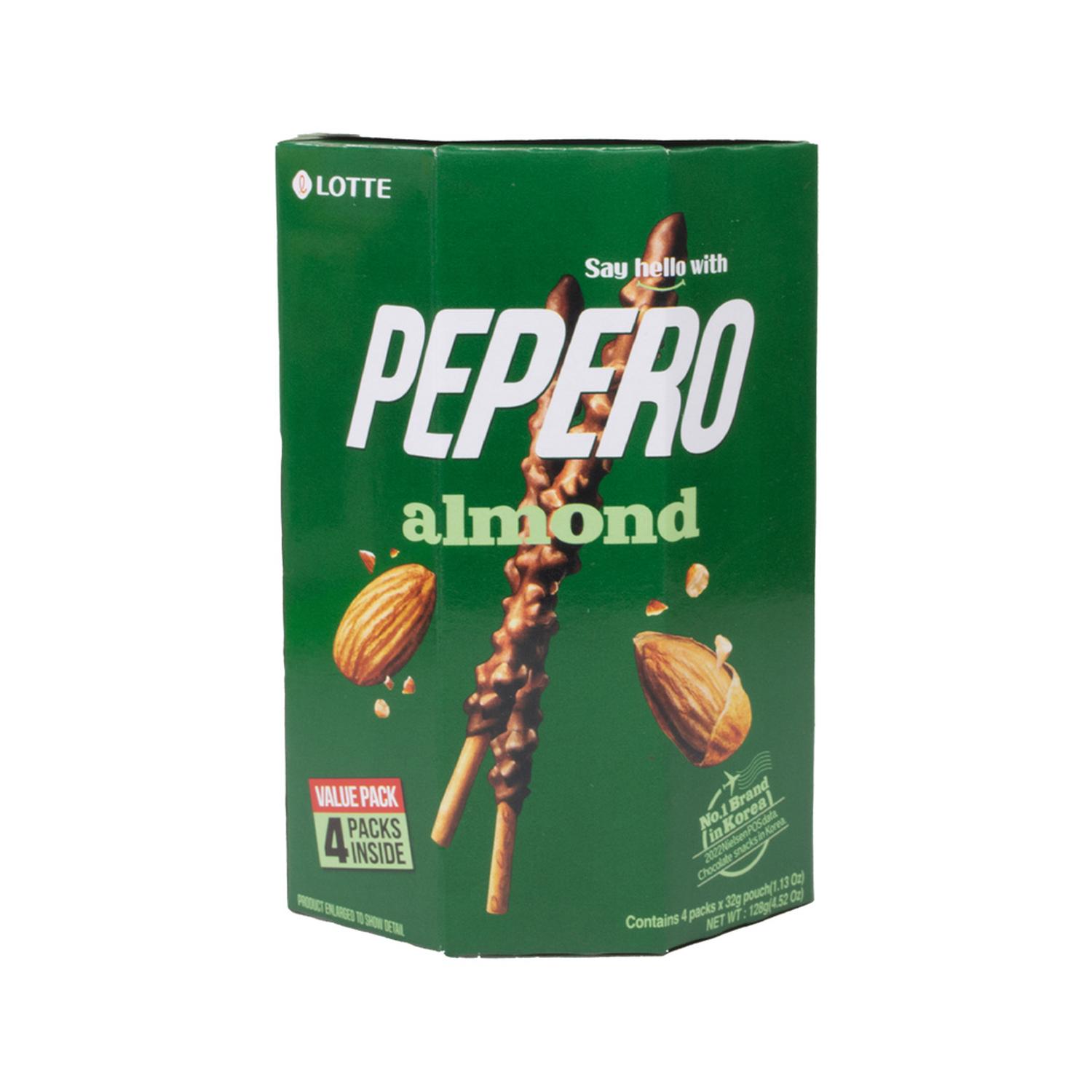 Acerca del producto: Lotte Pepero Almond es un delicioso snack en forma de palitos cubiertos con chocolate y almendras, que combina el crujiente de las almendras con el dulce sabor del chocolate.