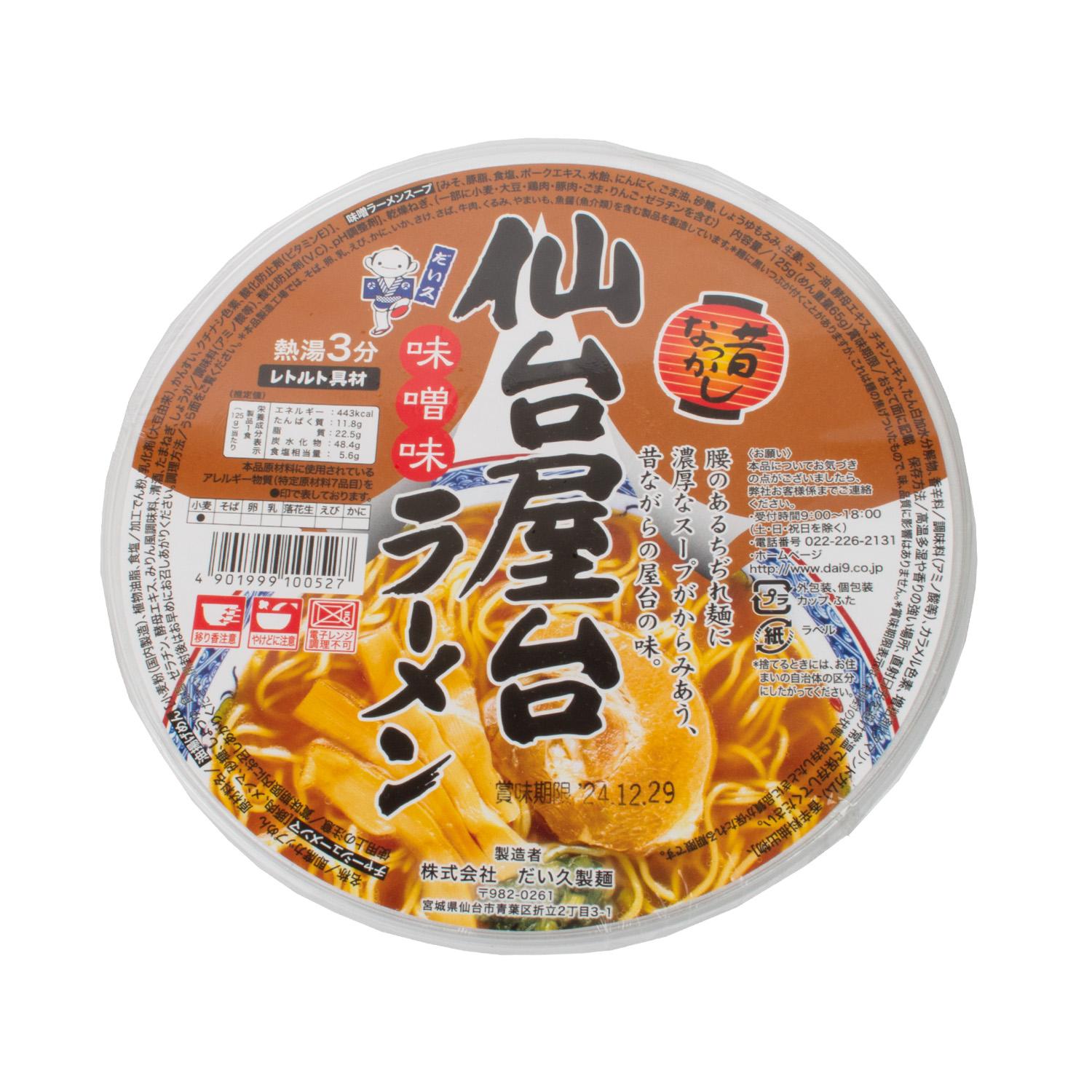 Ramen instantáneo con un cremoso y auténtico caldo de miso, inspirado en los puestos callejeros de Sendai, ciudad icónica de la Prefectura de Miyagi.