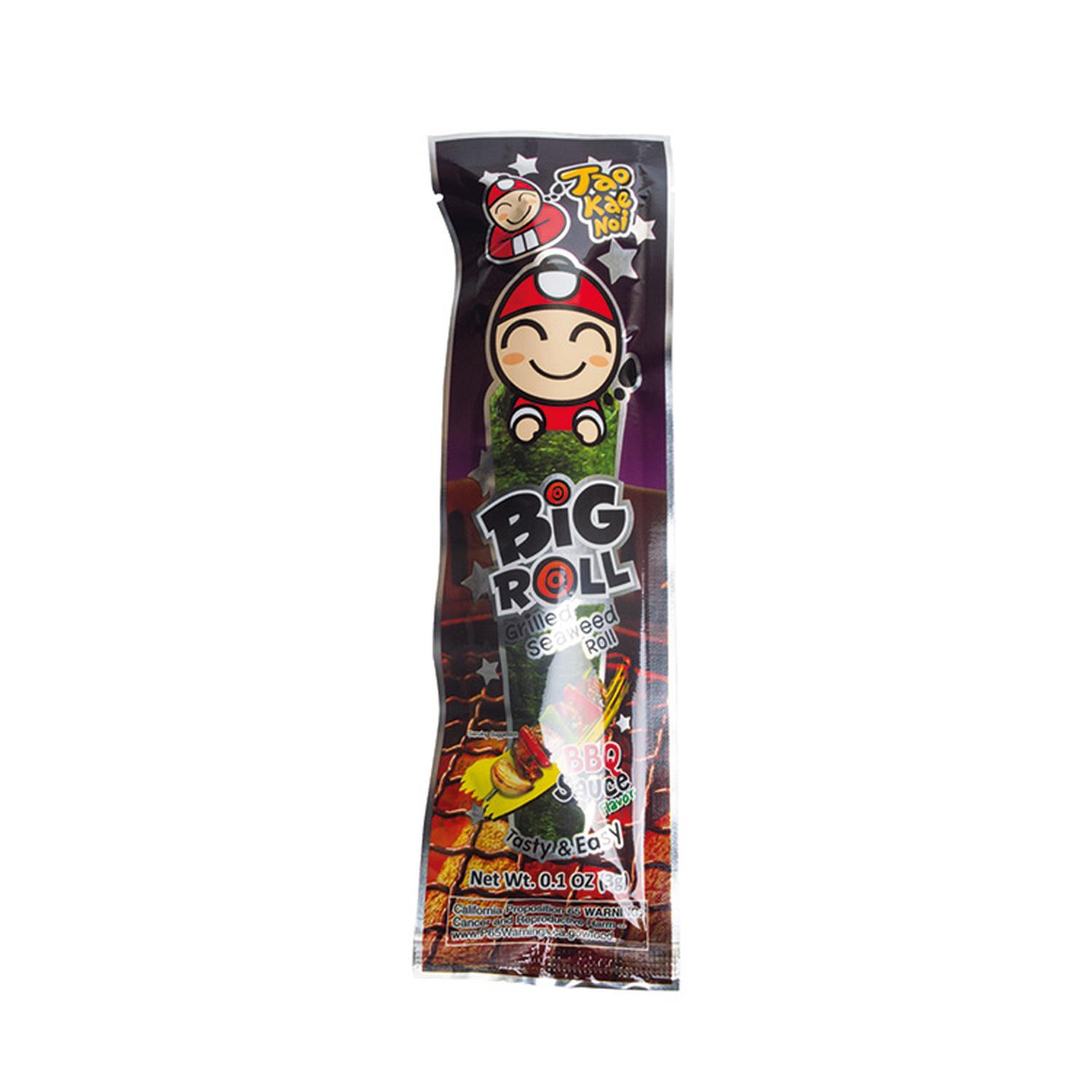 Acerca del producto: Taokaenoi Grilled Seaweed Roll BBQ ofrece un bocado delicioso y crujiente de alga nori asada con sabor a barbacoa. Ideal para quienes disfrutan de un toque ahumado y sabroso en sus snacks.