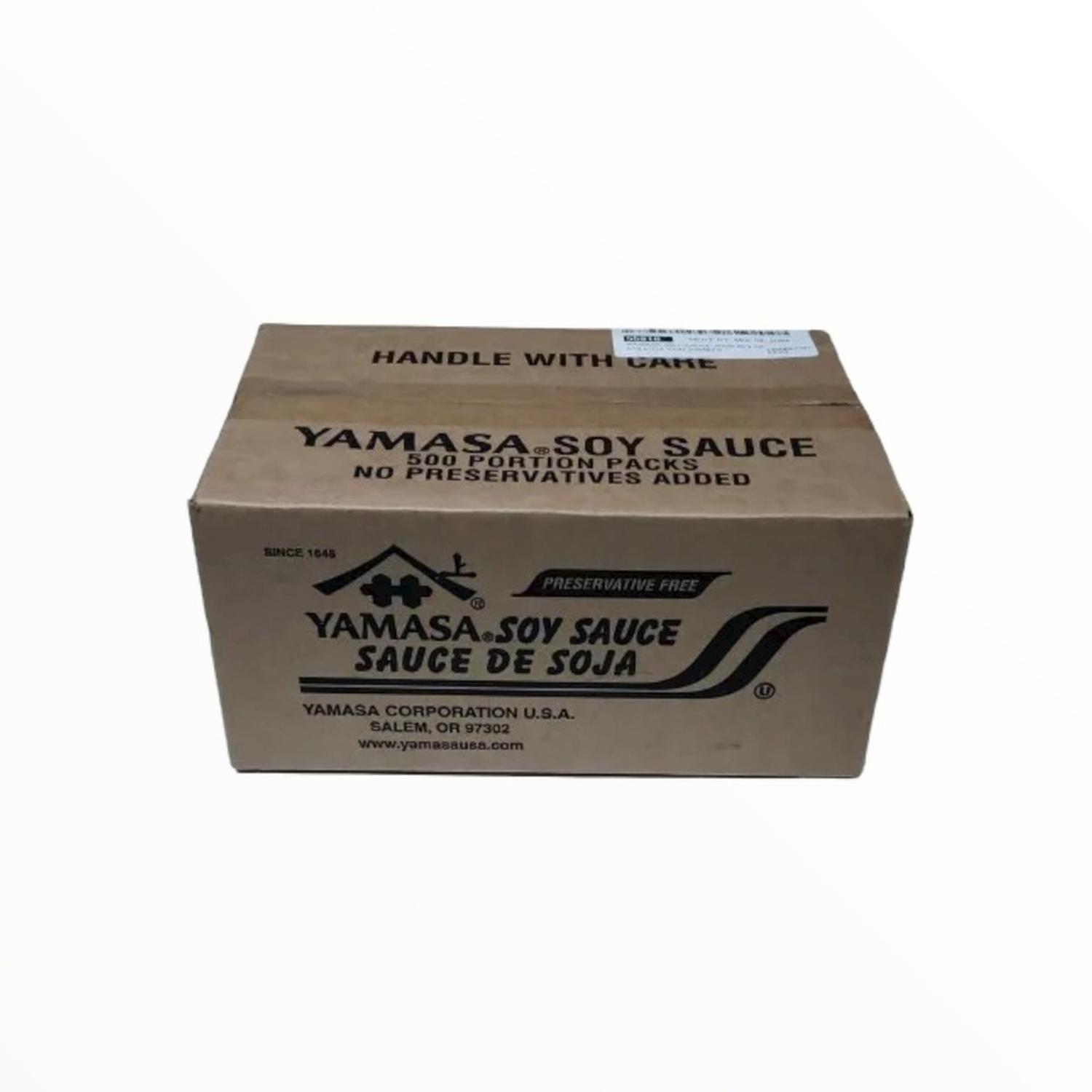 Caja con 500 sobres de salsa de soya marca Yamasa
