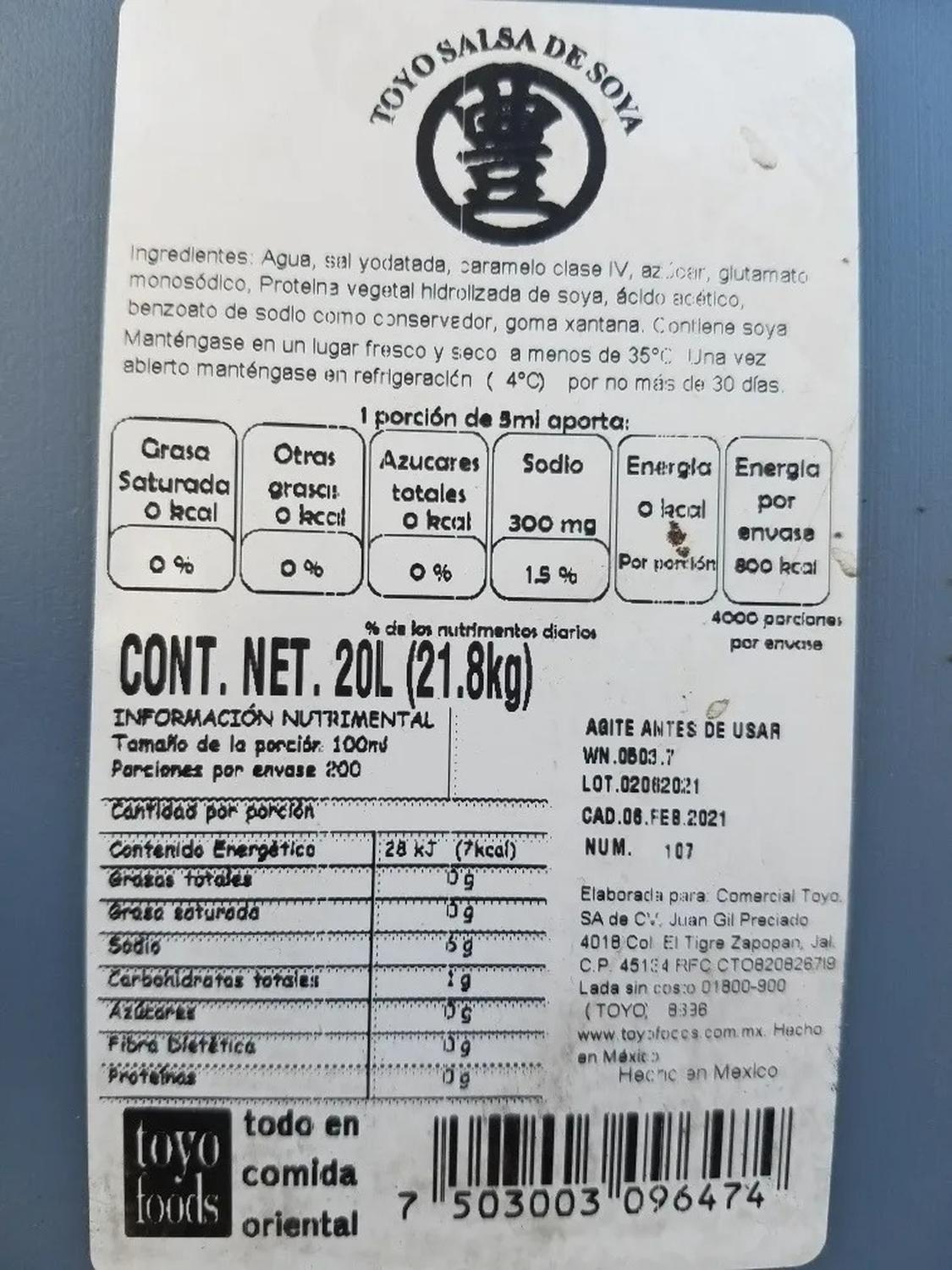 Salsa De Soya Natural, Toyo Foods, 20 Litros cantidad