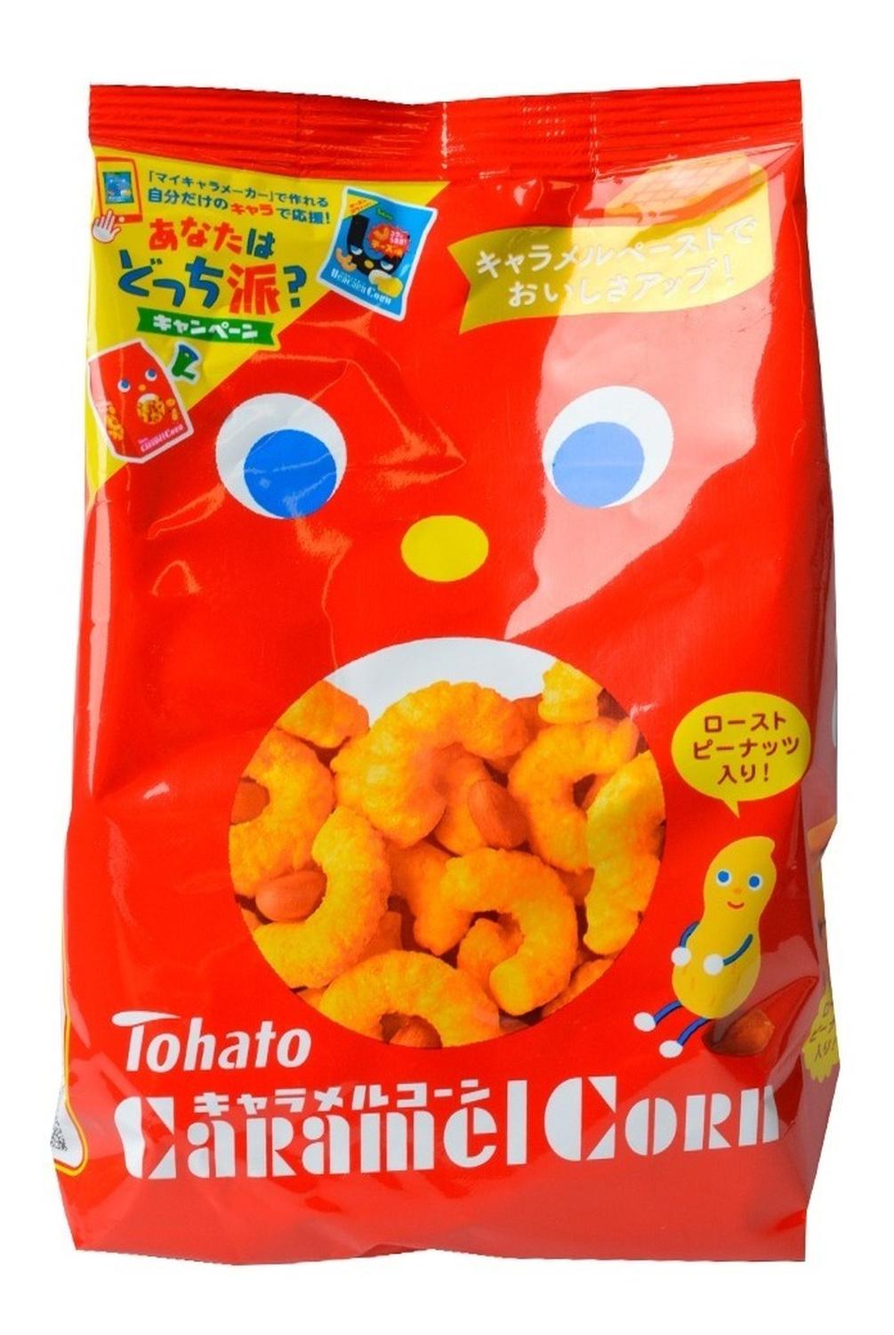 Snack japones de maiz inflado, sabor caramelo.
