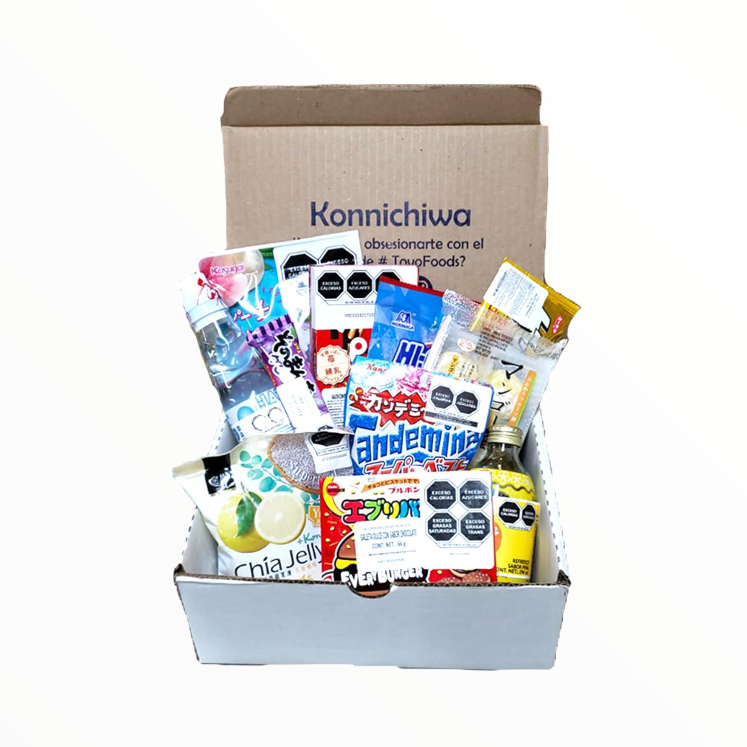Caja sorpresa con surtido de dulces y botanas japonesas y coreanas